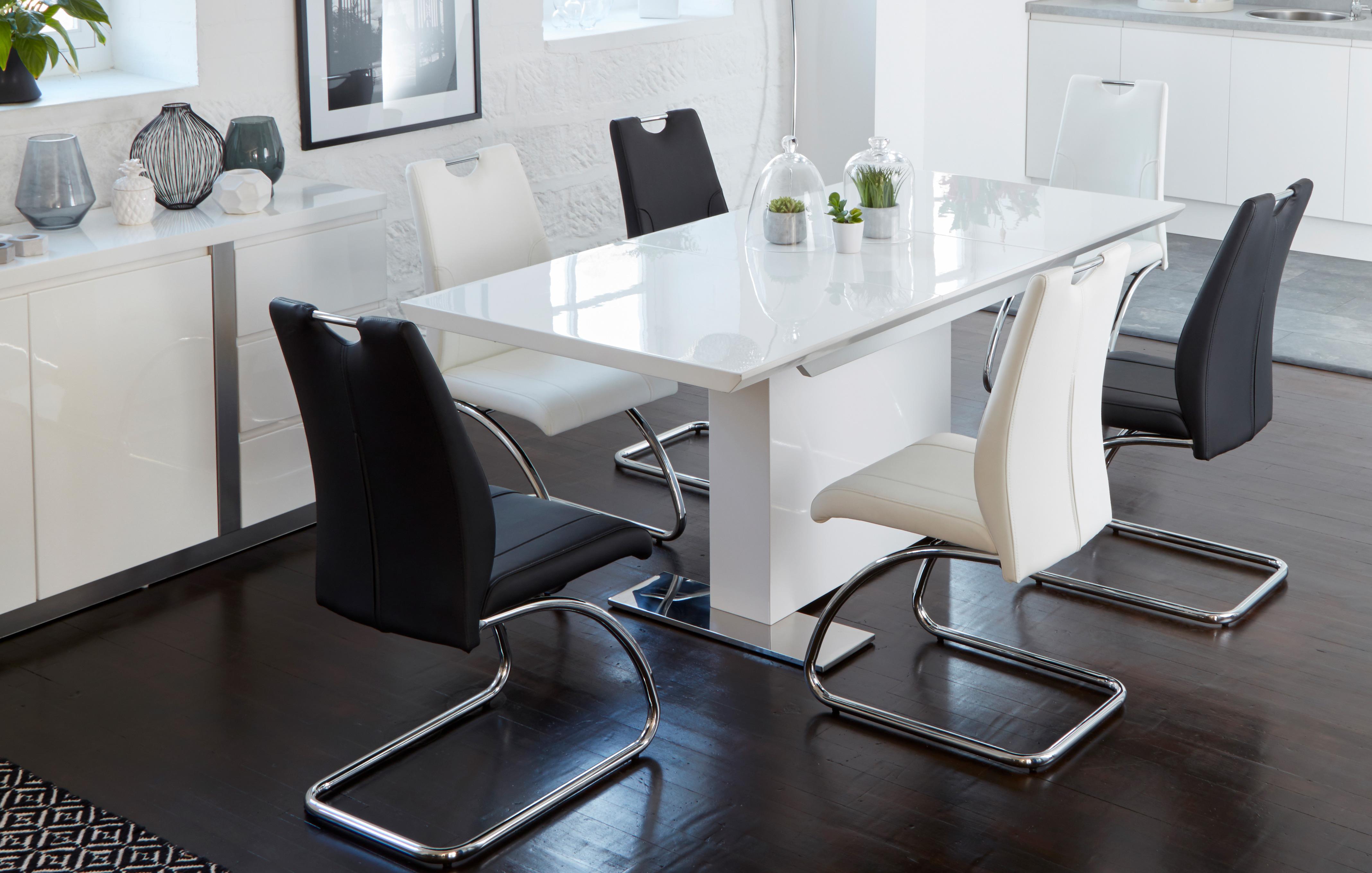 Black and white faux leather dining chairs x6. Top is lacquered and hand polished to protect the surface and enhance high gloss finish; Our living and dining cabinet selection at dfs furniture is tailored to meet a wide range of tastes ranging from country cottage traditional to urban chic. Mix and match your seating with a rustic bench, or opt for upholstered chairs in fabric and leather finishes. Discover our range of stylish and affordable dfs dining chairs.
